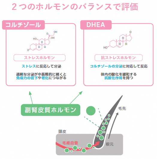 診断に必要なのは毛髪10本程度で、独自のストレス解析技術により、高効率・高精度に分析します。心と身体の健康状態を、長期的、かつ客観的に知ることができます。