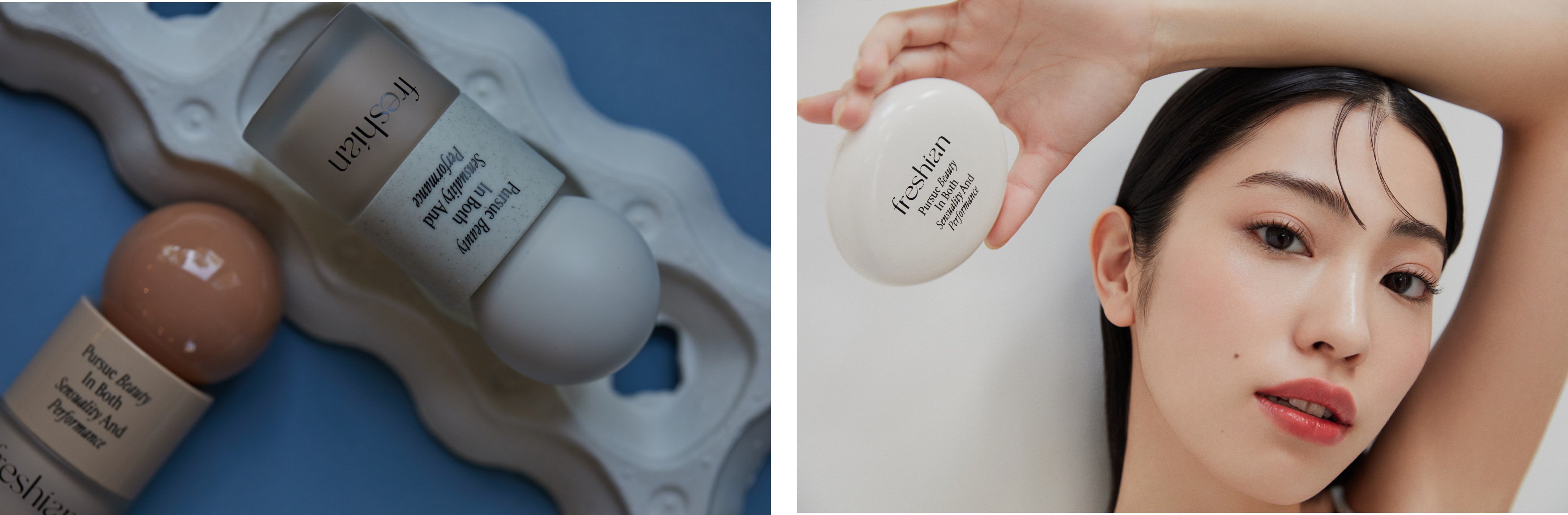 「freshian」は、全製品にイチジク、5種のヒアルロン酸、マデカソサイドが含まれています。メイクとスキンケアの長所と効能を組み合わせ、メイクをしながらも肌の刺激を鎮静化し、肌の油分と水分のバランスをケアできるアイテムです。