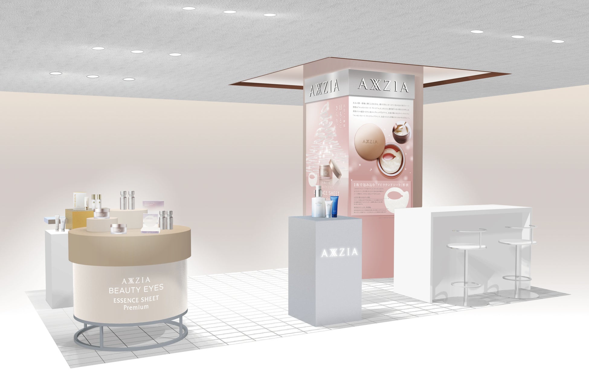 今回の大丸梅田店POP UP ショップでは、エステクオリティの目もとケアアイテムを取りそろえる「アクシージア ビューティーアイズ」シリーズをはじめ、エイジングケア*¹の最高峰*²「THE B MAISON」シリーズ、アクシージア史上最高処方の美容ドリンク「AGドリンクX」、美容と健康をテーマにしたサプリメント「ヴィーナスレシピ」シリーズなどを販売いたします。また、ビューティーアイズの「目もとケア」3STEPセットのご購入でアクシージア限定の「かっさ」をプレゼントするほか、「フェイスマスク」や「炭酸パック」のお得なセットなど、POP UP ショップ限定のキャンペーンをご用意しています。