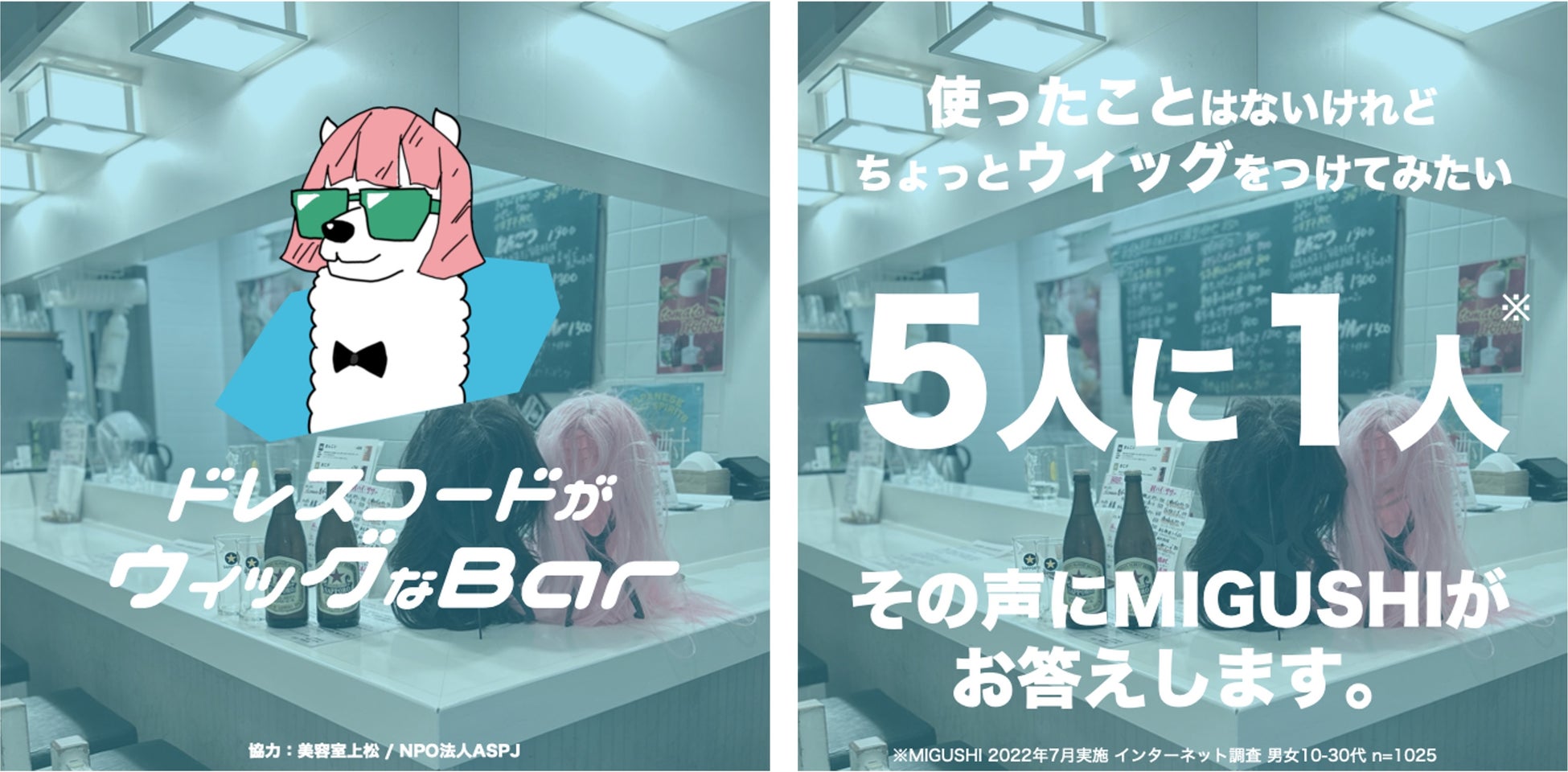 ウィッグのイメージをもっとポジティブなものに変えていく、という想いのもと、MIGUSHIは定期的に「ドレスコードがウィッグなBar」というイベントを開催しています。