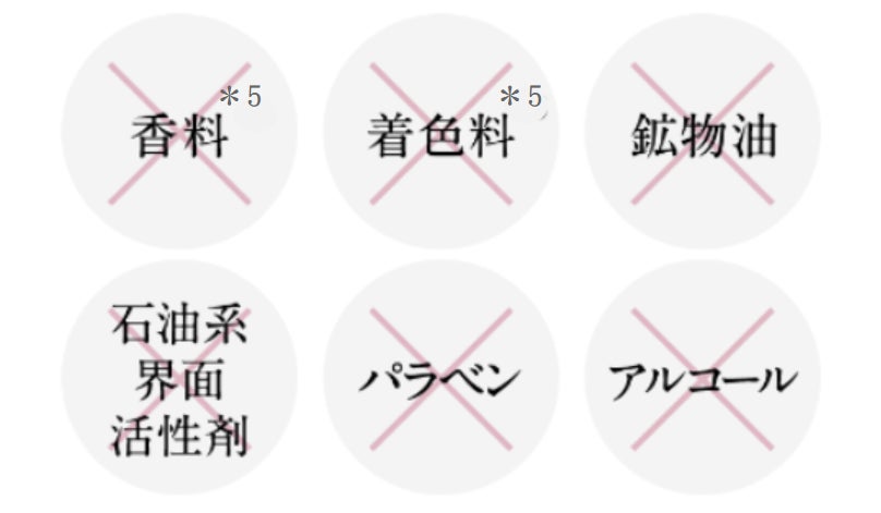 <6つの無添加:香料*5・着色料*5・鉱物油・アルコール・パラベン・石油系界面活性剤 フリー>