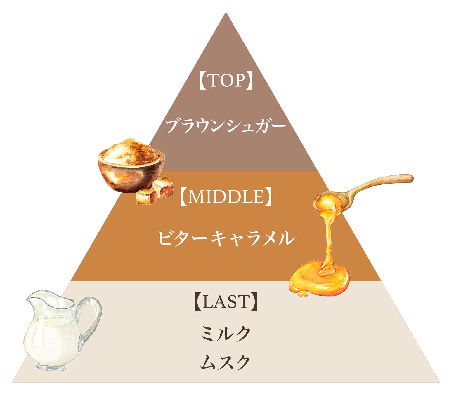 芳醇なコクのあるブラウンシュガー、濃厚な焦がしビターキャラメル、クリーミーなミルクが重なり合う甘香ばしさ広がる、贅沢な”キャラメルラテ”の香り。