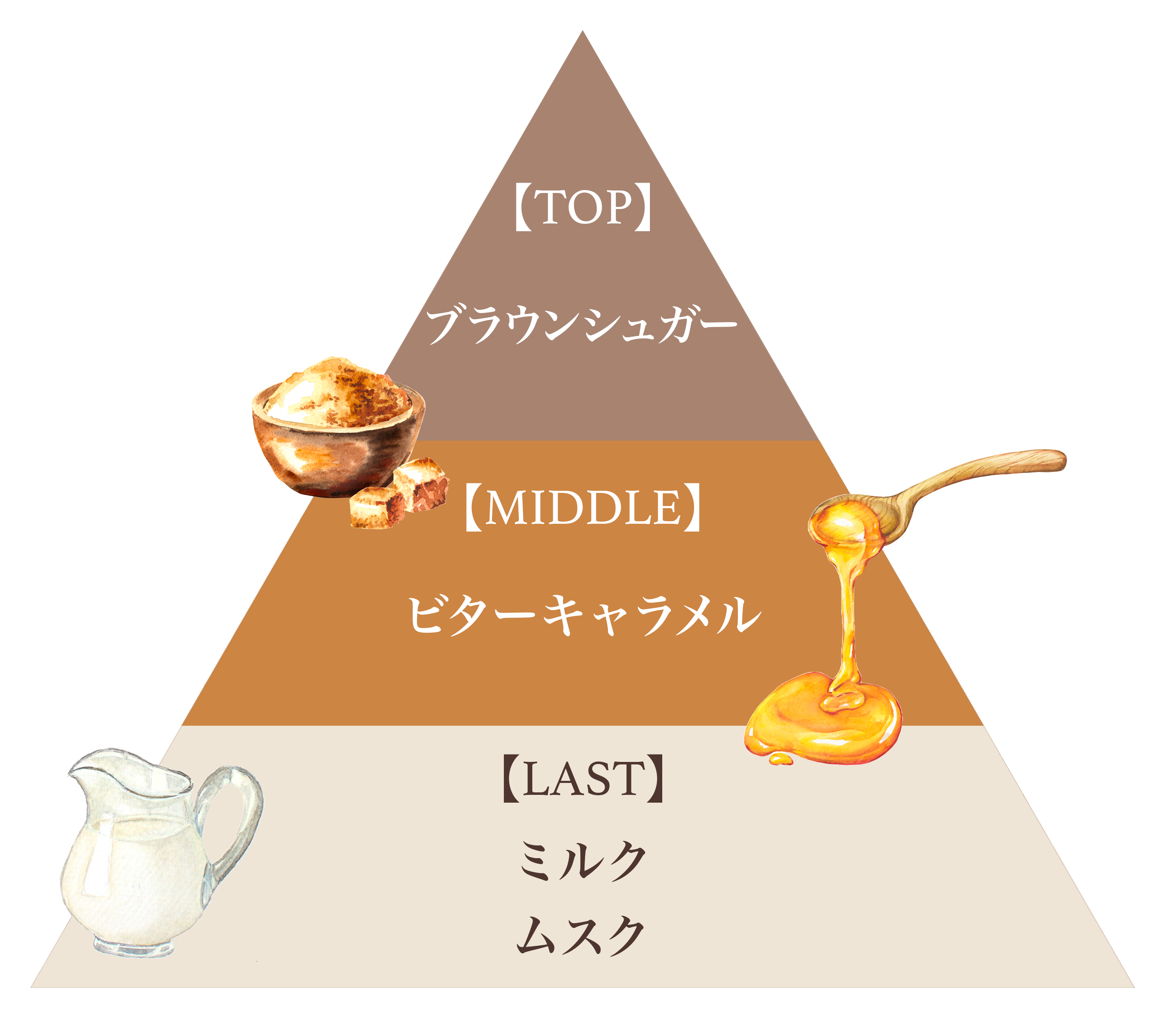 芳醇なコクのあるブラウンシュガー、濃厚な焦がしビターキャラメル、クリーミーなミルクが重なり合う甘香ばしさ広がる、贅沢な”キャラメルラテ”の香り。