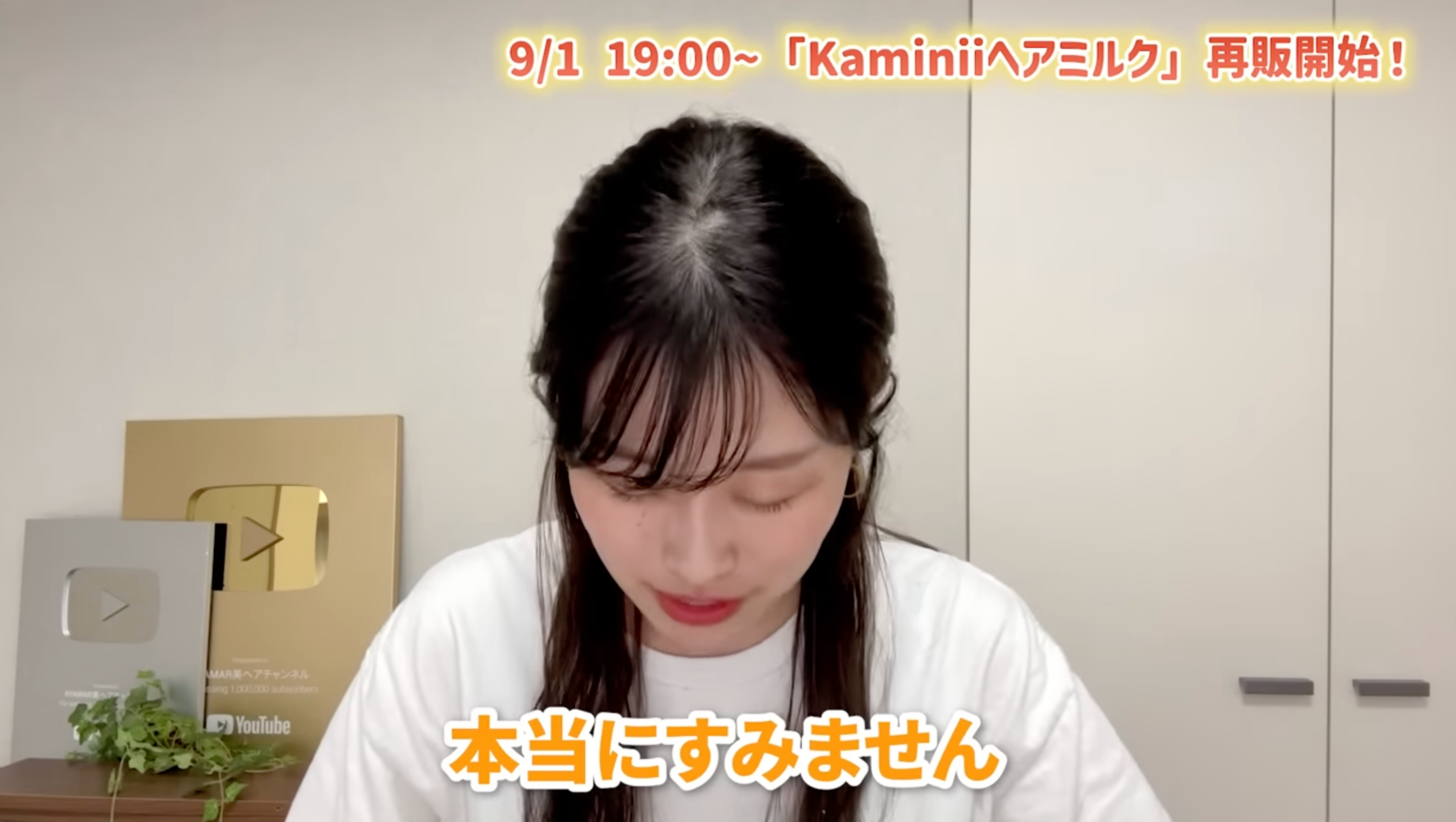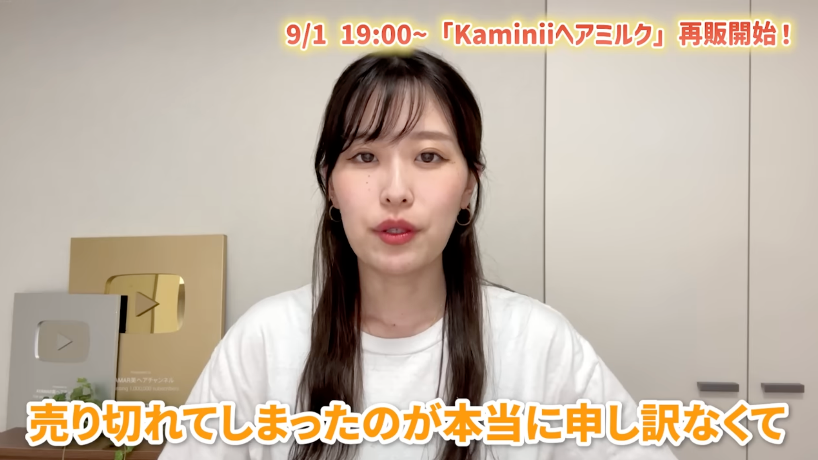 KaminiiはAYAMRの日々のヘアケアの研究、彼女の120万人を超えるSNSフォロワーの声から誕生した【ドライヤー前に特化した洗い流さないトリートメント(ヘアミルク)】です。発売前から多くの反響をいただき、Amazon各部門でランキング1位を獲得し、発売開始から2回目の完売となりました。