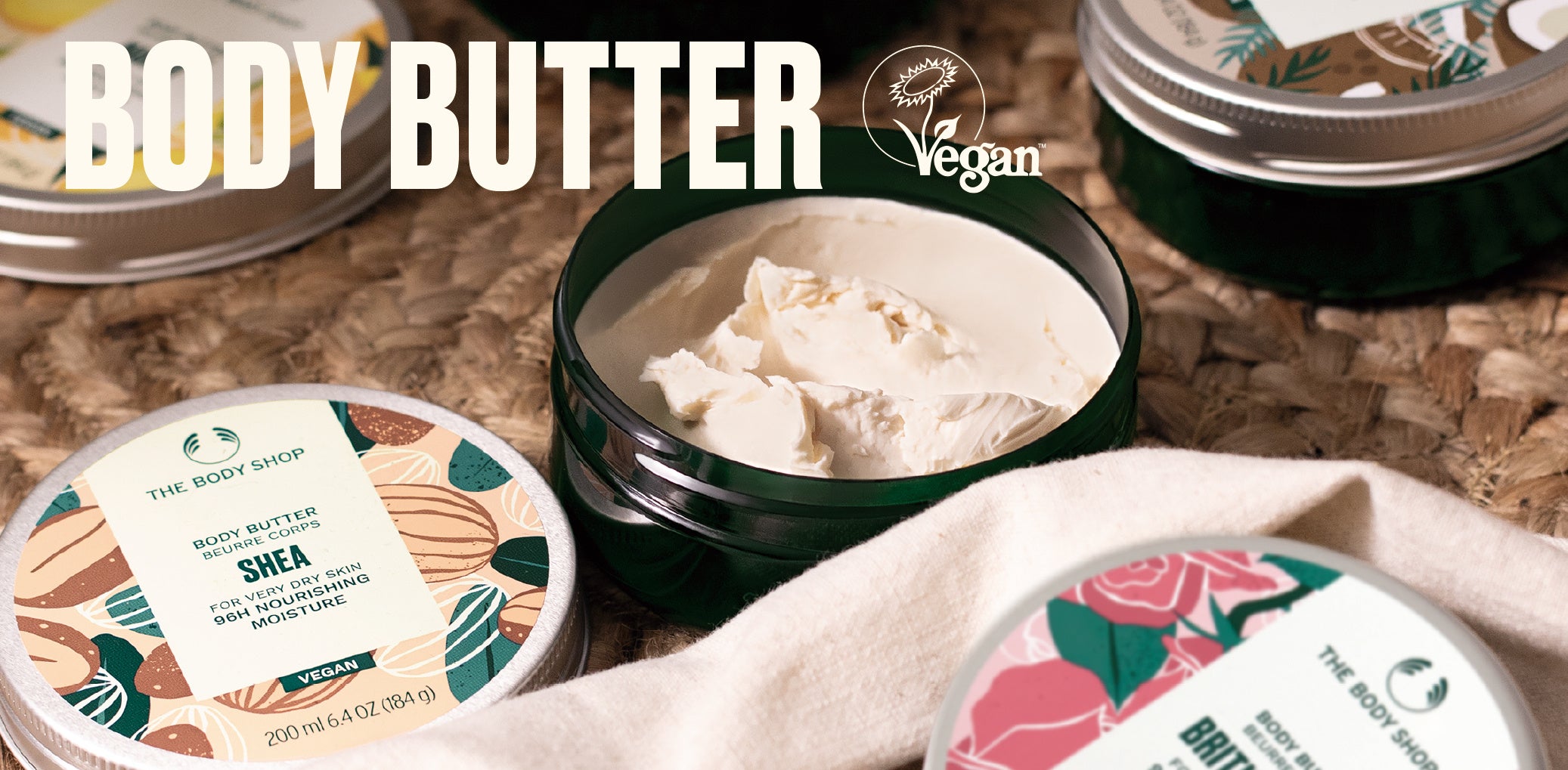 全部で11 種類のボディバターは、肌タイプに合わせた保湿力やテクスチャー、好きなフレーバーからお選びください。全アイテムで世界最古の権威あるヴィ―ガン協会「The Vegan Society」の認証を取得しています。
