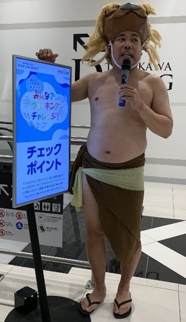 この「めざせてっぺん!地域対抗! みんなでウォーキングチャレンジ!」のスタートに合わせ、9月10日(日)イオンモール豊川(愛知県豊川市)の特設会場にて、お笑い芸人の大西ライオンさん、さらに女子小中学生に大人気のユニット「めるぷち」のメンバー4名を招いてのイベントを開催しました。イベントでは、トークセッションで自らの健康や運動の習慣について語っていただいた後、お客様も一緒にモール内をみんなで歩くイベント、フォトブースでの記念撮影などを開催いたしました。会場には多くのお客様にお集まりいただき、健康習慣についての意識を高めていただくことができました。
