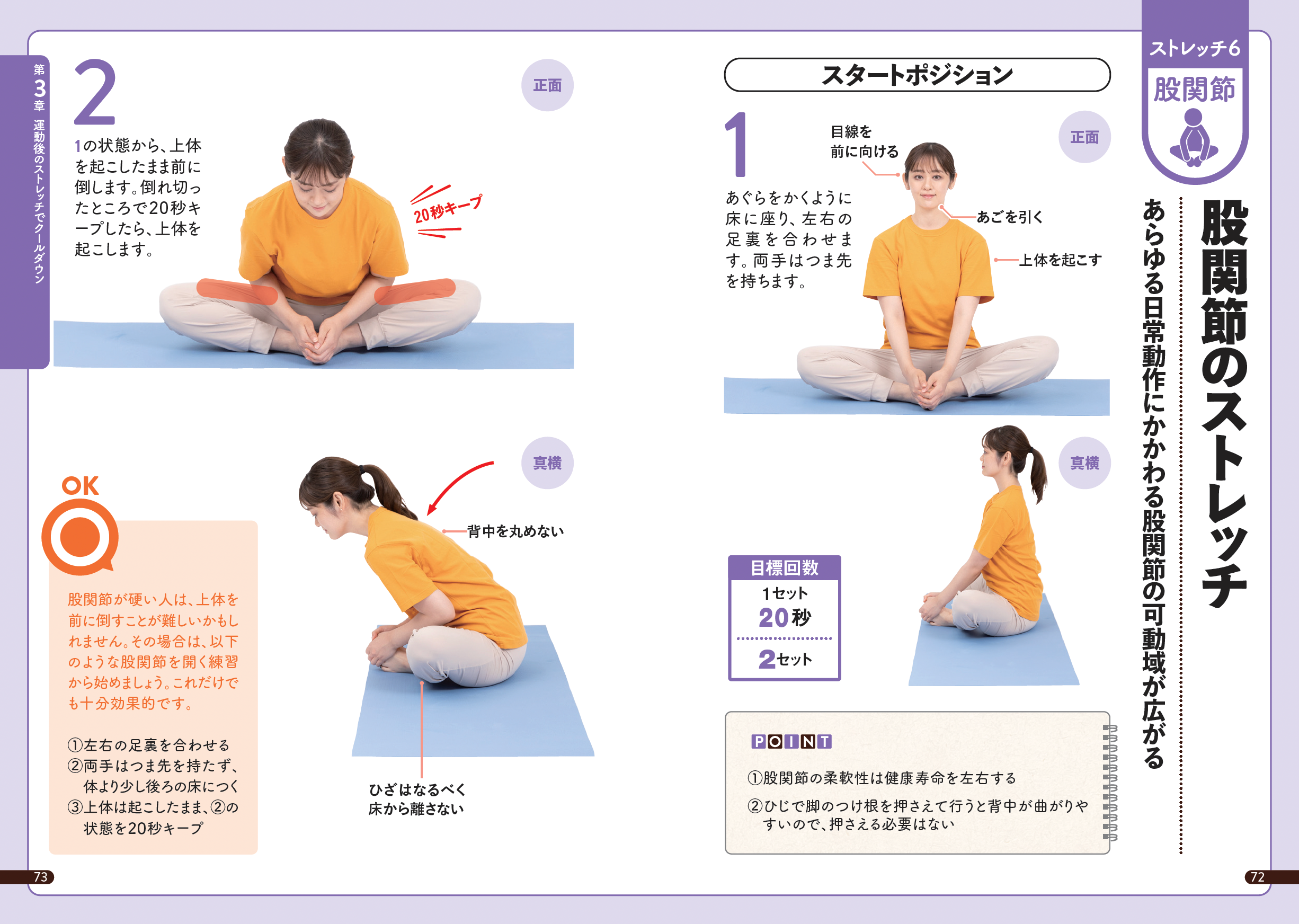 さらに、肥満、冷え、腰痛など、さまざまな不調を抱えている人に向けた「長生きおうち体操」や、体操後に行うことでリラックス効果などが得られるストレッチのやり方も収録。