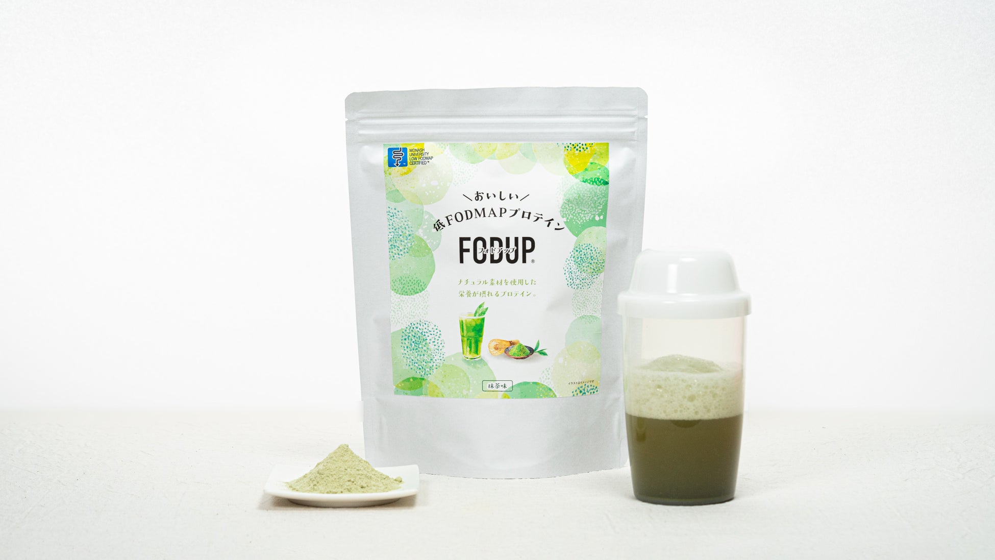 安心して飲んでいただけるように抹茶味も、Monash大学で低FODMAPの認証を取得いたしました。