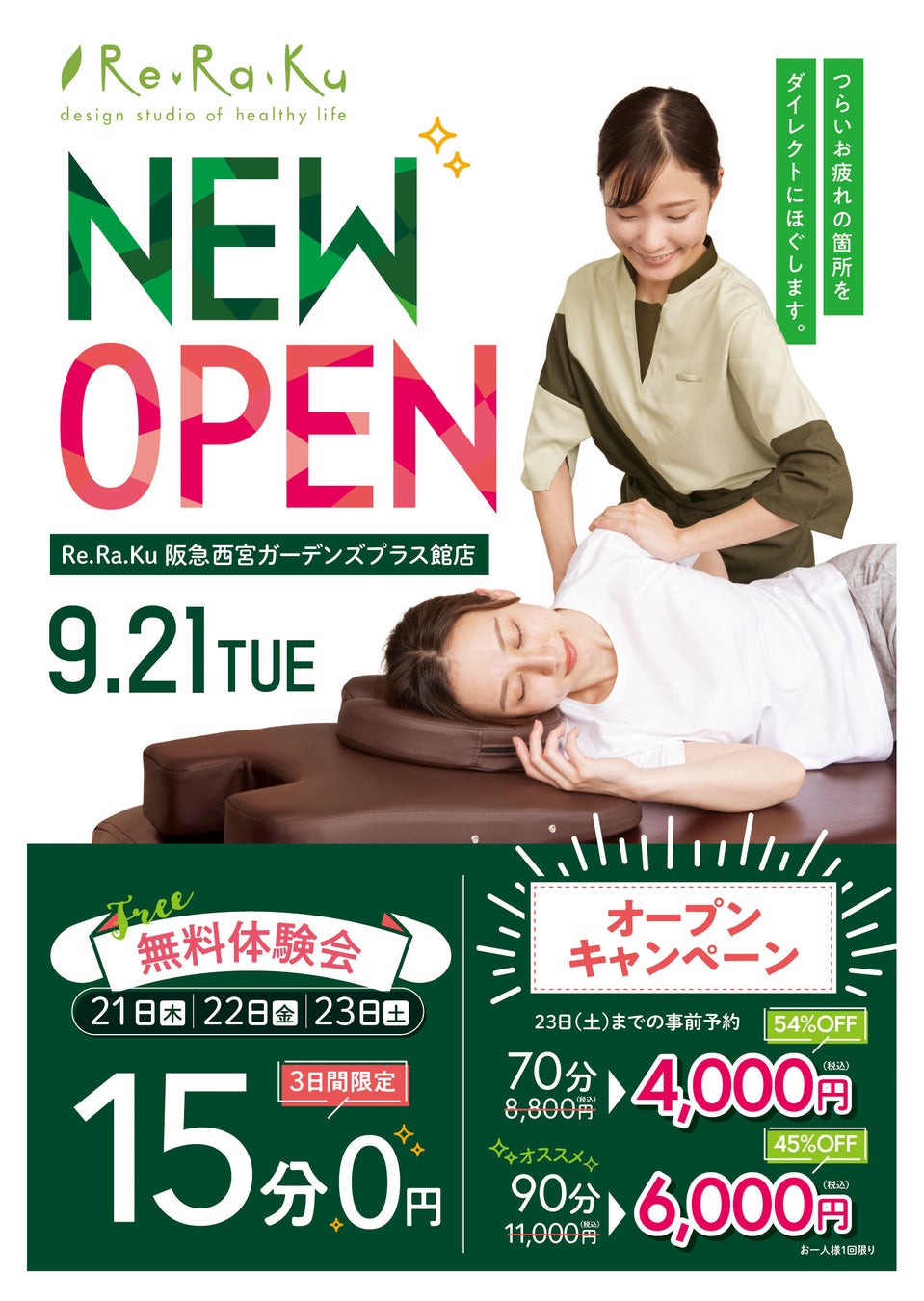 オープンを記念致しまして、お得なキャンペーンを実施いたしますので、この機会にぜひお試しくださいませ。