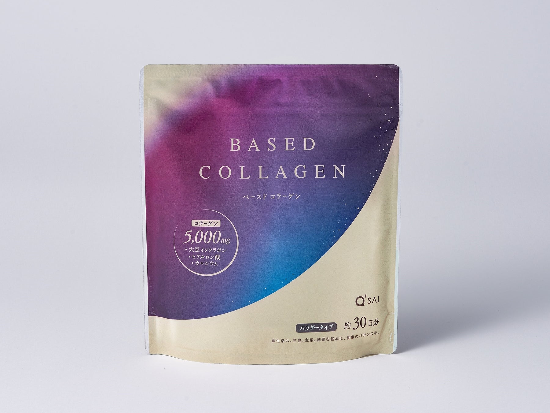 そこで誕生したのが、長年女性の健康と美容に寄り添ってきた当社ならではの知見を活かし、コラーゲンをベースに、ゆらぎ世代の女性に必要な3つの成分を配合した新商品「ベースドコラーゲン」です。健康ケアができる商品でありながらも、まるで美容ケア商品のようなパッケージデザインで “健康で美しくあり続けたい”と願う女性が使いたくなる商品となっています。