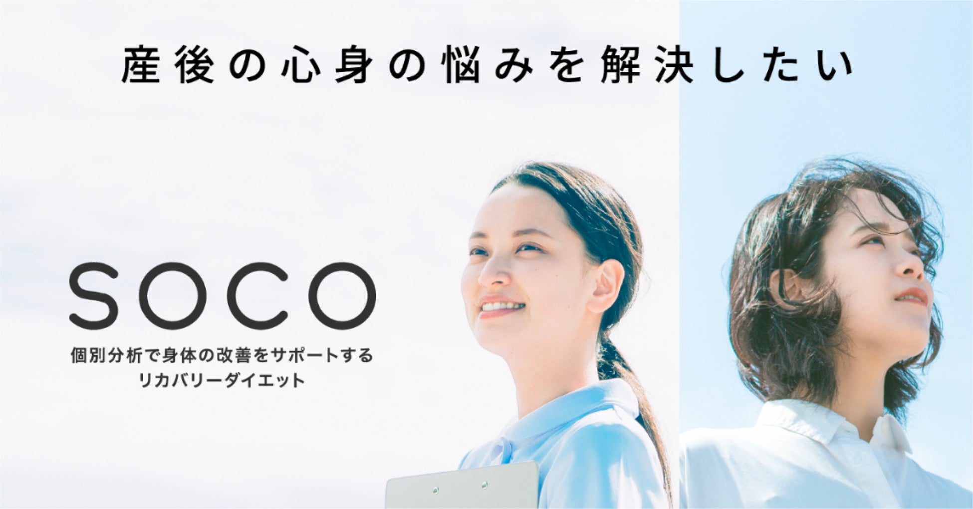 SOCOは、産後女性の身体トラブルや体型改善をサポートするオンライン型の産後リカバリーサービスです。