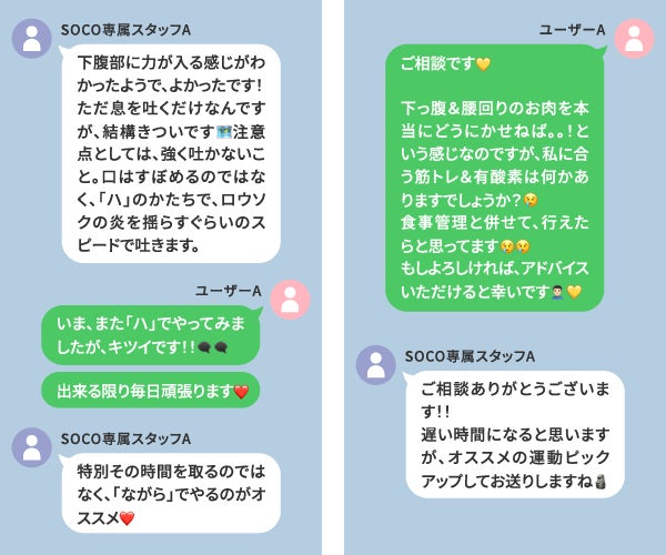 そこで、SOCOは、理学療法士や栄養士、フィットネストレーナーら各分野の専門家と連携し、ユーザーの身体トラブルと体型の改善をサポートします。