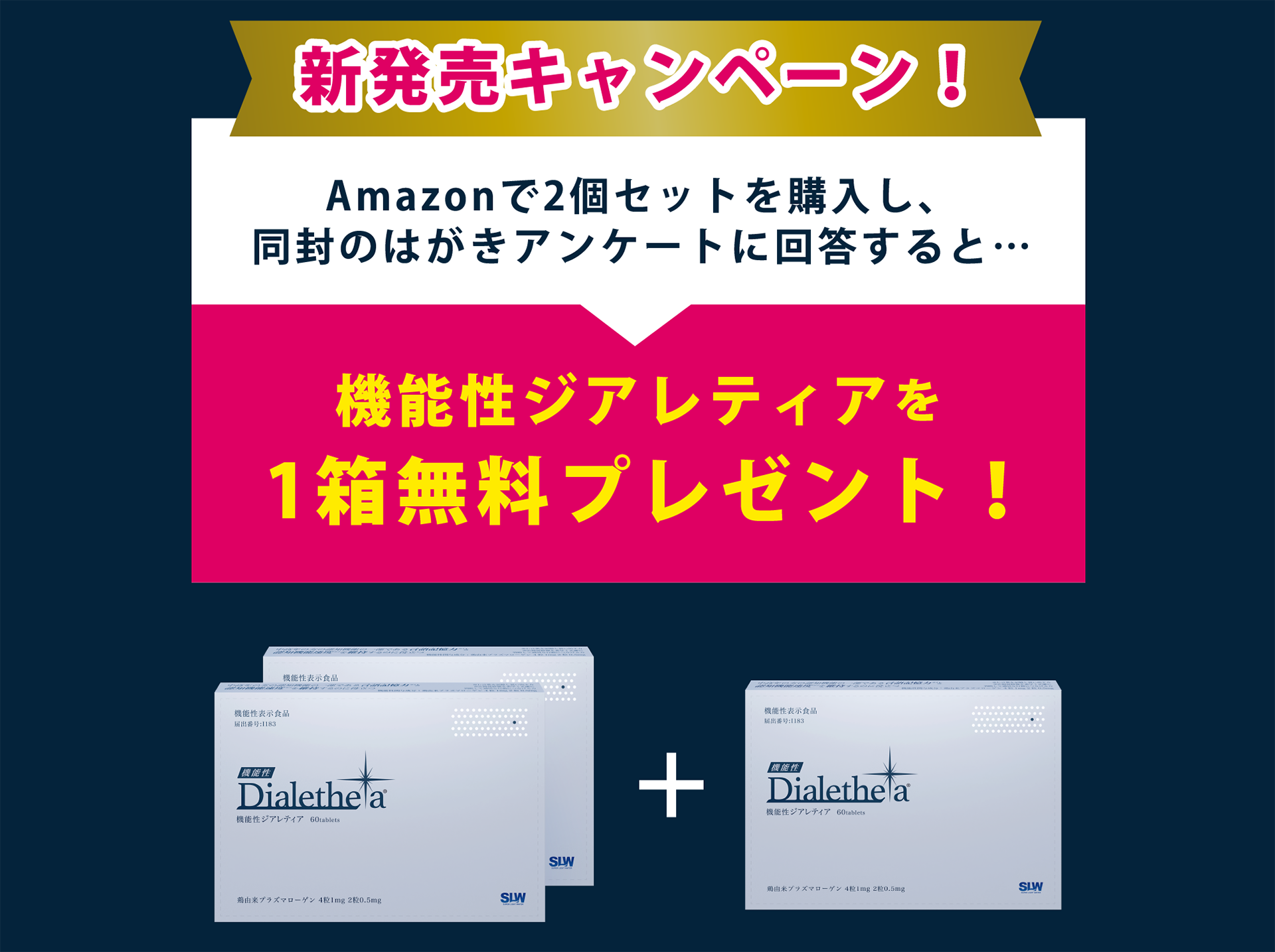 期間中にamazonにて「機能性ジアレティア」2箱セットをご注文ください。