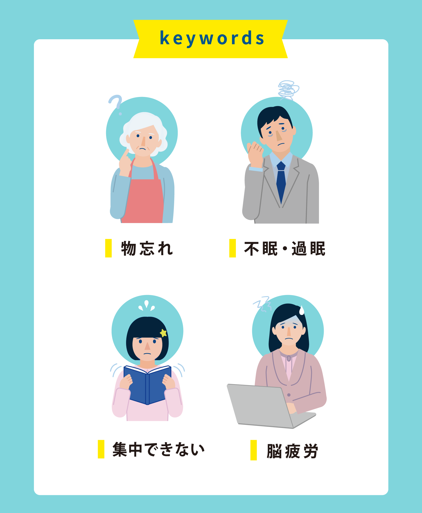 ・集中力の必要な方や途切れがちな方。思考力の必要な方。医師、学者、経営者やプログラマー、受験生などの記憶力や認知機能が求められる方。