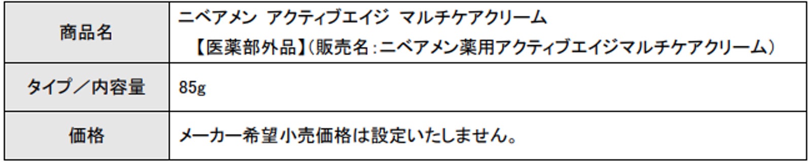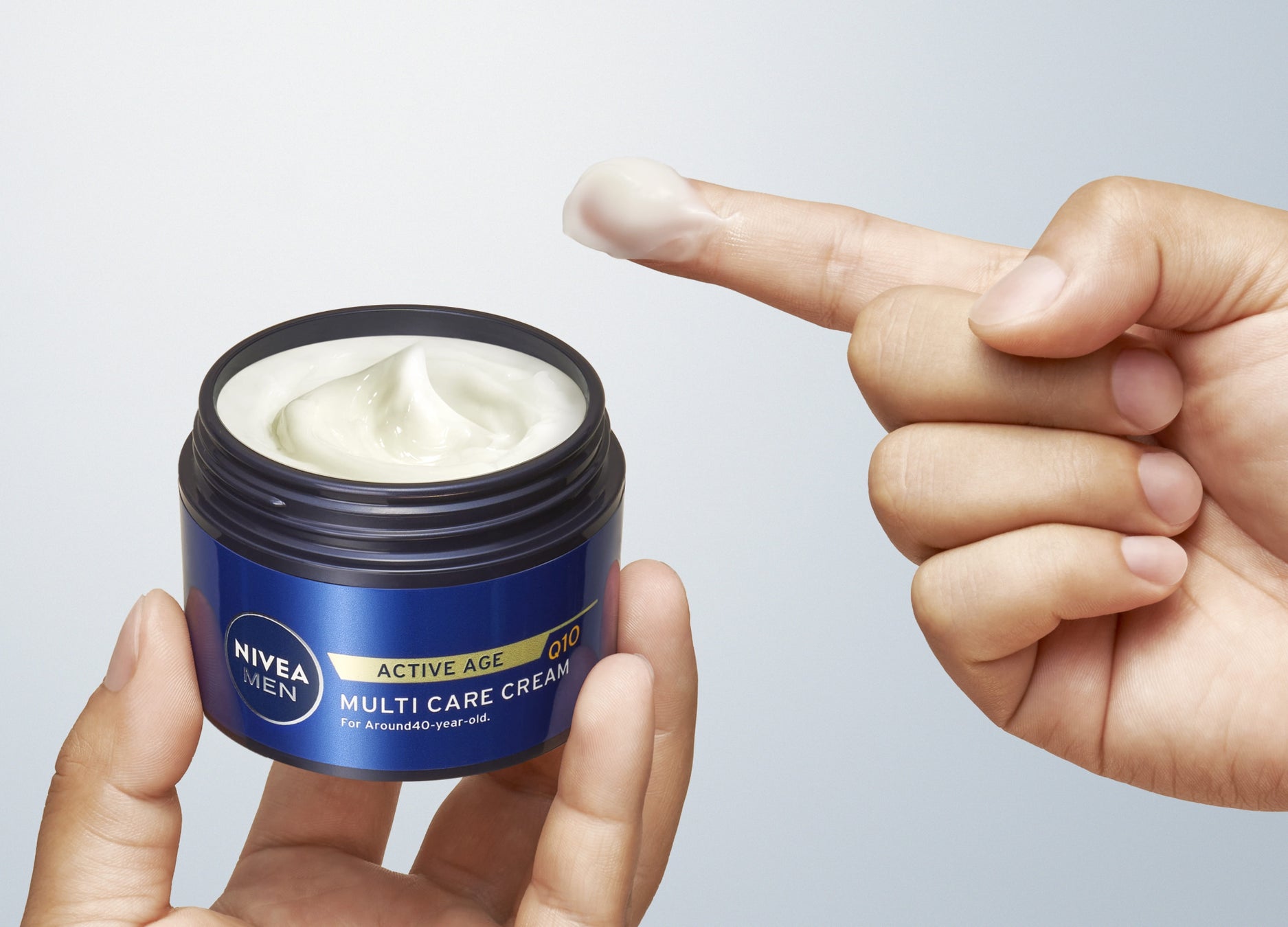 そこで、そのような“アラフォー男性”特有のニーズに対し、ニベアメンから「AROUND40からの 先回りの予防ケア(*1)『ニベアメン アクティブエイジ マルチケアクリーム』【医薬部外品】」をご提案いたします。これ1塗り(*2)。2つの有効成分配合で、カミソリ負けを防ぎ、シミを予防します(*4)。また、肌にハリを与え、ベタつかずスーッとなじむ使い心地です。テカりにくい自然な仕上がりは、エイジングケア(*5)を始めたいとお考えの方にお勧めの、エントリーケア商品に仕上がっています。