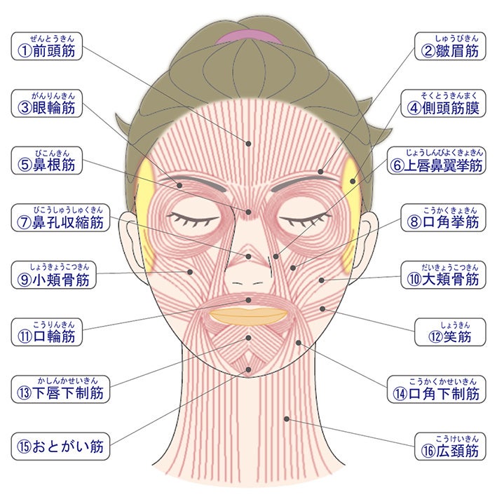皮膚と表情筋は繋がっています。皮膚を引っ張ると表情筋も一緒に引っ張られます。表情筋や皮膚を正しい方向とテンションで引っ張り、固定し、睡眠することで効果が上がります。動画などのオンラインマニュアルを見て正しくテーピングし、根気よく継続する必要があります。