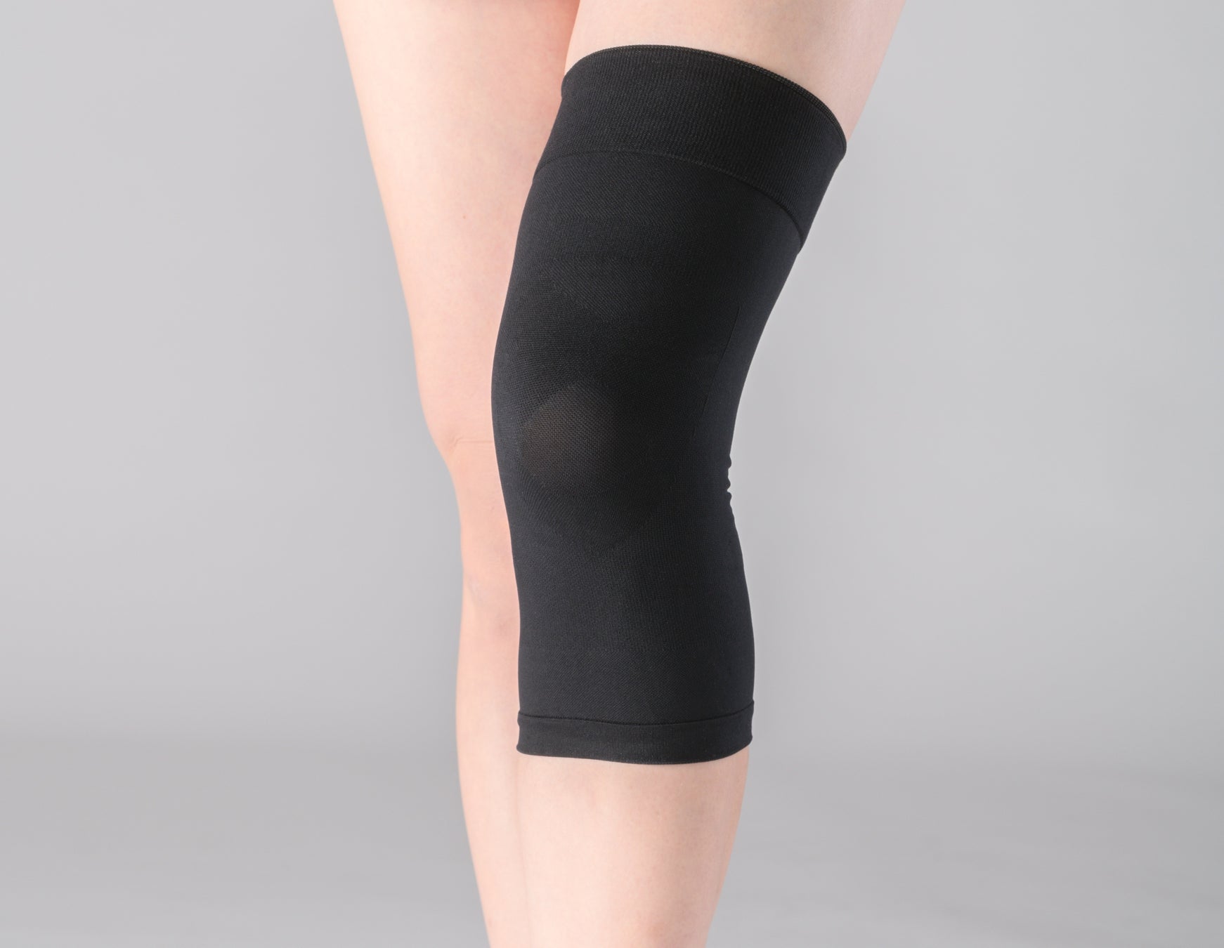 スポーツ現場で用いられることの多いテーピング構造を取り入れ、膝に安定感を与えます。また、縫い目のない仕様の為ズボンの下に履いても目立ちにくく、履くタイプで簡単に装着できます。
