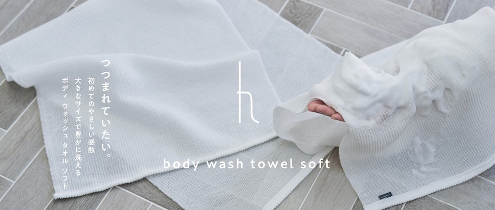 暮らしの新しいスタンダードを提案する「h tag (アッシュタグ)」の人気プロダクト、絶妙なシャリ感が好評の「ボディウォッシュタオル」に、感触の異なる、ふわふわでやわらかい「 ボディウォッシュタオル ソフト」が登場しました!