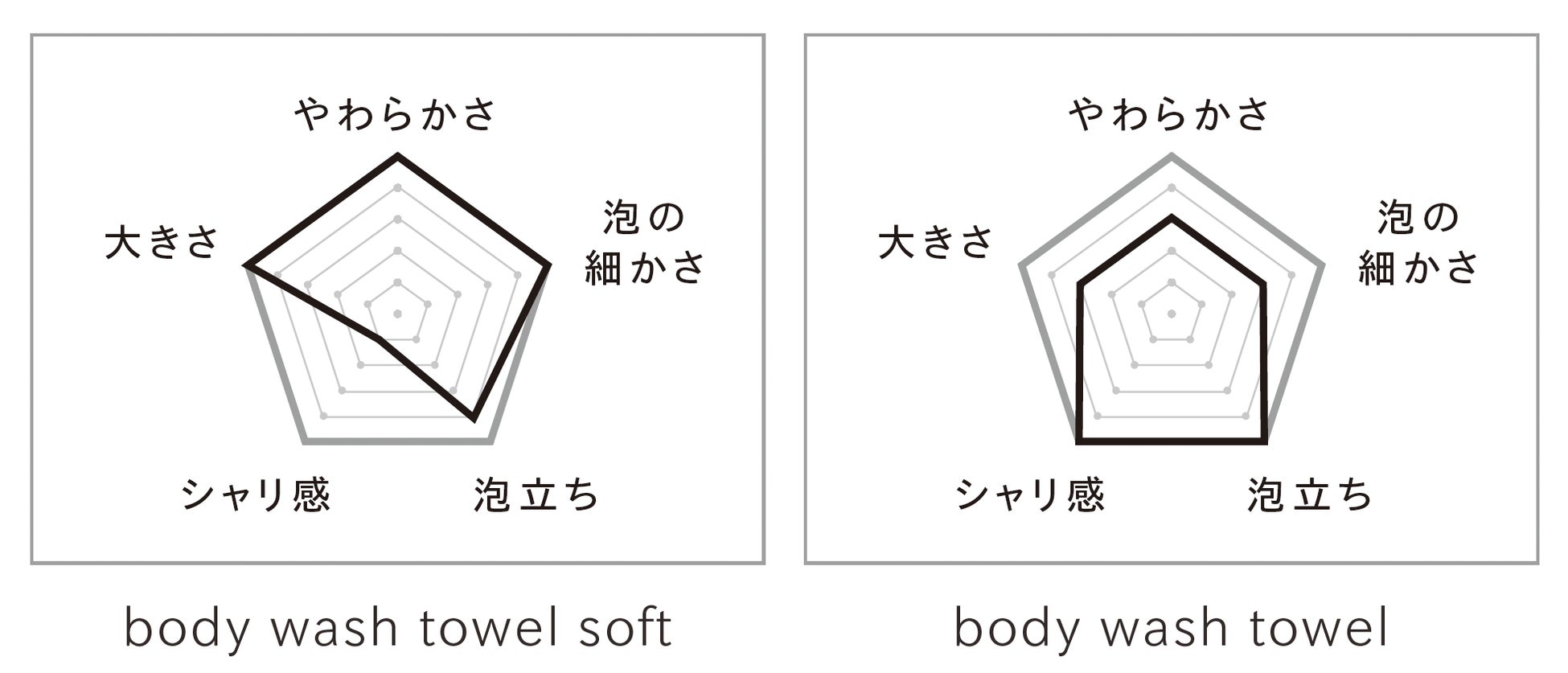 「やわらか」ソフトタイプの「ボディウォッシュタオル ソフト」(図左)