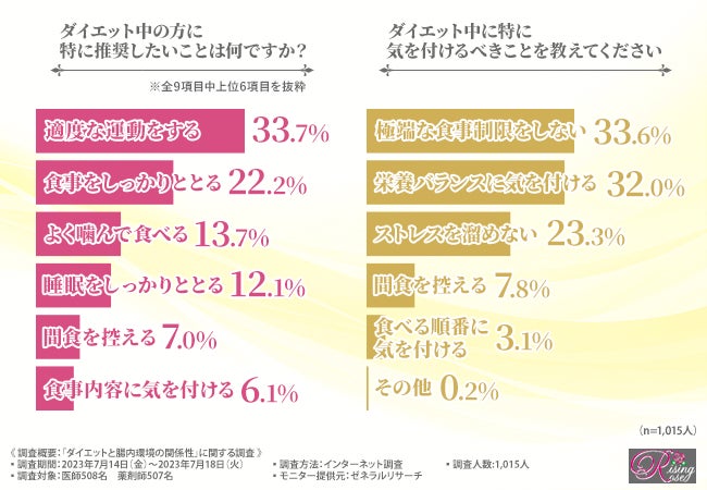 そこで今回、フローラスリム(https://f-slim.com/)の販売を手掛ける株式会社ライジングローズは、全国の医師と薬剤師を対象に「ダイエットと腸内環境の関係性」に関する調査を実施しました。