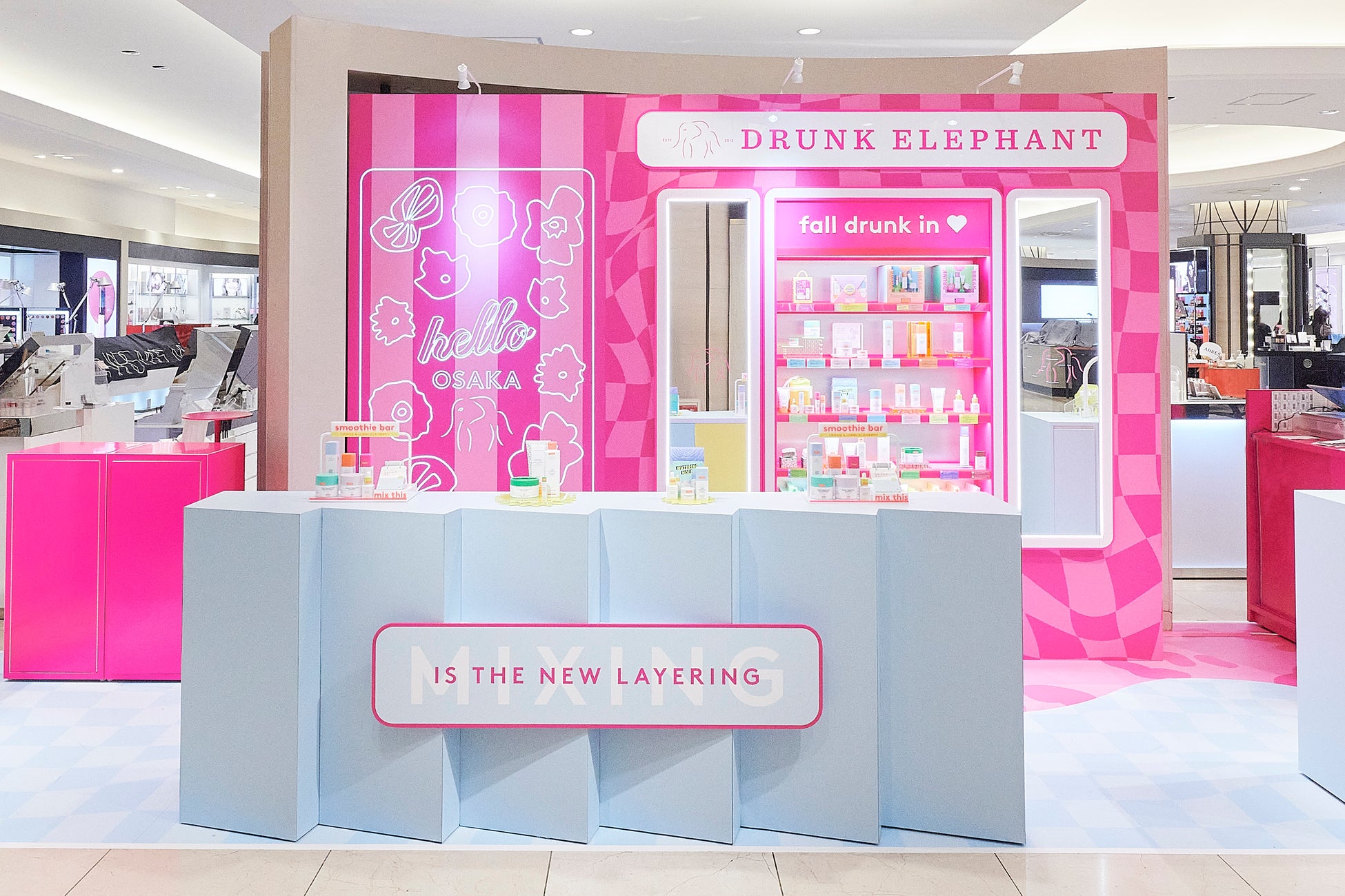 阪急うめだ本店では2度目の開催となるドランク エレファントのポップアップ。“Hello Osaka”のディスプレイが出迎えてくれる、ひときわカラフルで目を引くポップアップは、立ち寄るだけでハッピーになれるようなドランク エレファントらしい世界観。通常製品も手元でお試しいただくことができるほか、ホリデー製品の先行発売や本イベント限定のキットなど、ここでしかゲットできないアイテムも。ユニークなスキンケア方法「手のひらスムージー」を店頭のエキスパートと一緒に体験できるこの貴重な機会に、ぜひ足を運んでみて。