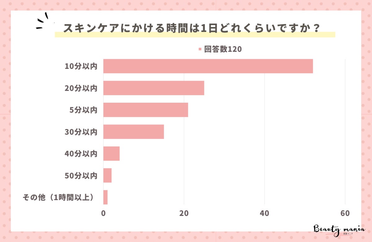 アンケート内容:スキンケアにかける時間は1日どれくらいですか?