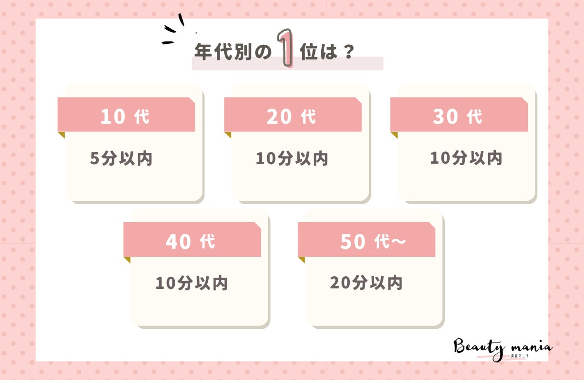 ・朝は忙しいので5分ほどですが、夜はじっくり丁寧にスキンケアするので30分以内を選びました。(40代)