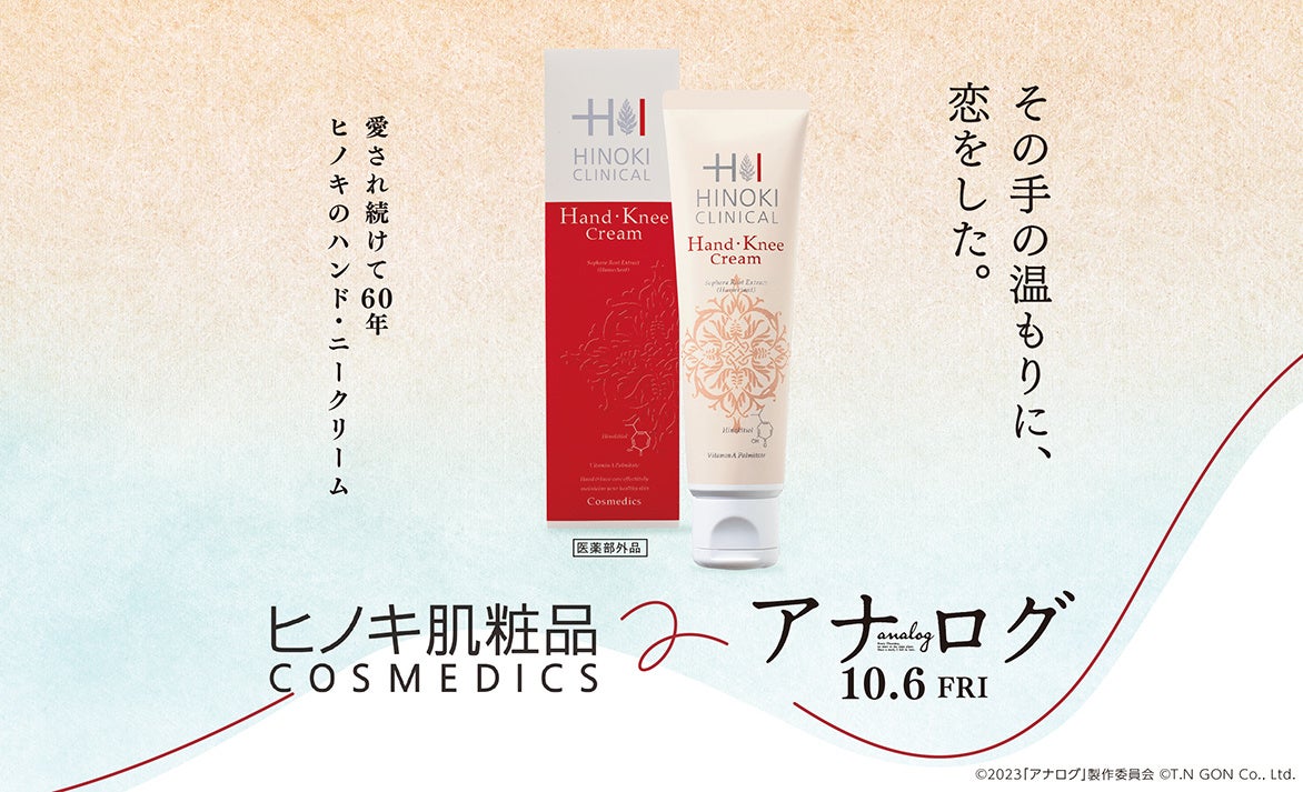 ヒノキ新薬株式会社 (本社:東京都千代田区 、代表取締役:阿部 武彦) は、この度、ヒノキ肌粧品の【初代ハンドクリーム】が発売されてから60年となることを記念して映画『アナログ』とタイアップを実施するにあたり、下記交通機関においてタイアップ広告を掲載・放映いたします。