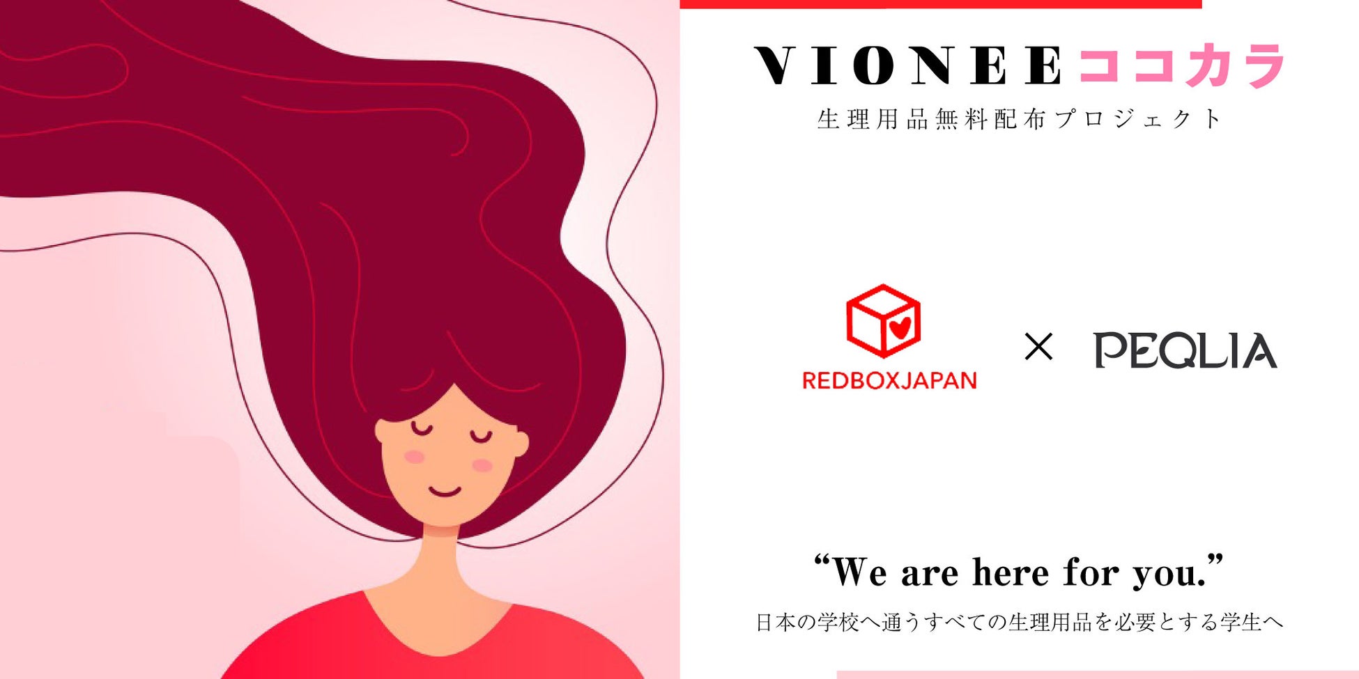今回のご寄付は、ぺキュリア様のデリケートゾーン専用コスメ“VIONEE”とレッドボックスジャパンの共同プロジェクト「VIONEE ココカラ 生理用品無料配布プロジェクト」を実施したことによるものです。