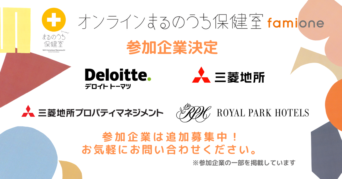 2018年9月より、法人向け福利厚生プログラムを提供開始。小田急電鉄やTBS厚生会、GAtechonologiesなどへの福利厚生導入に加えて、ソニー、全日本空輸株式会社(ANA)、伊藤忠労働組合などへもセミナーを提供しています。自治体への提供としても、神奈川県横須賀市をはじめ、長崎県、東京都杉並区、世田谷区、広島県三原市、群馬県邑楽町など、都道府県単位から中核都市、そして数万人規模の市区町村まで幅広く提供を行っております。