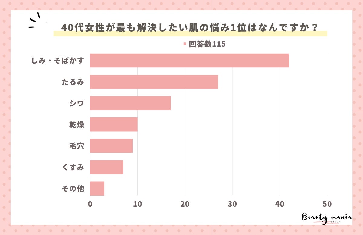 アンケート内容:40代女性が最も解決したい肌の悩み1位はなんですか?