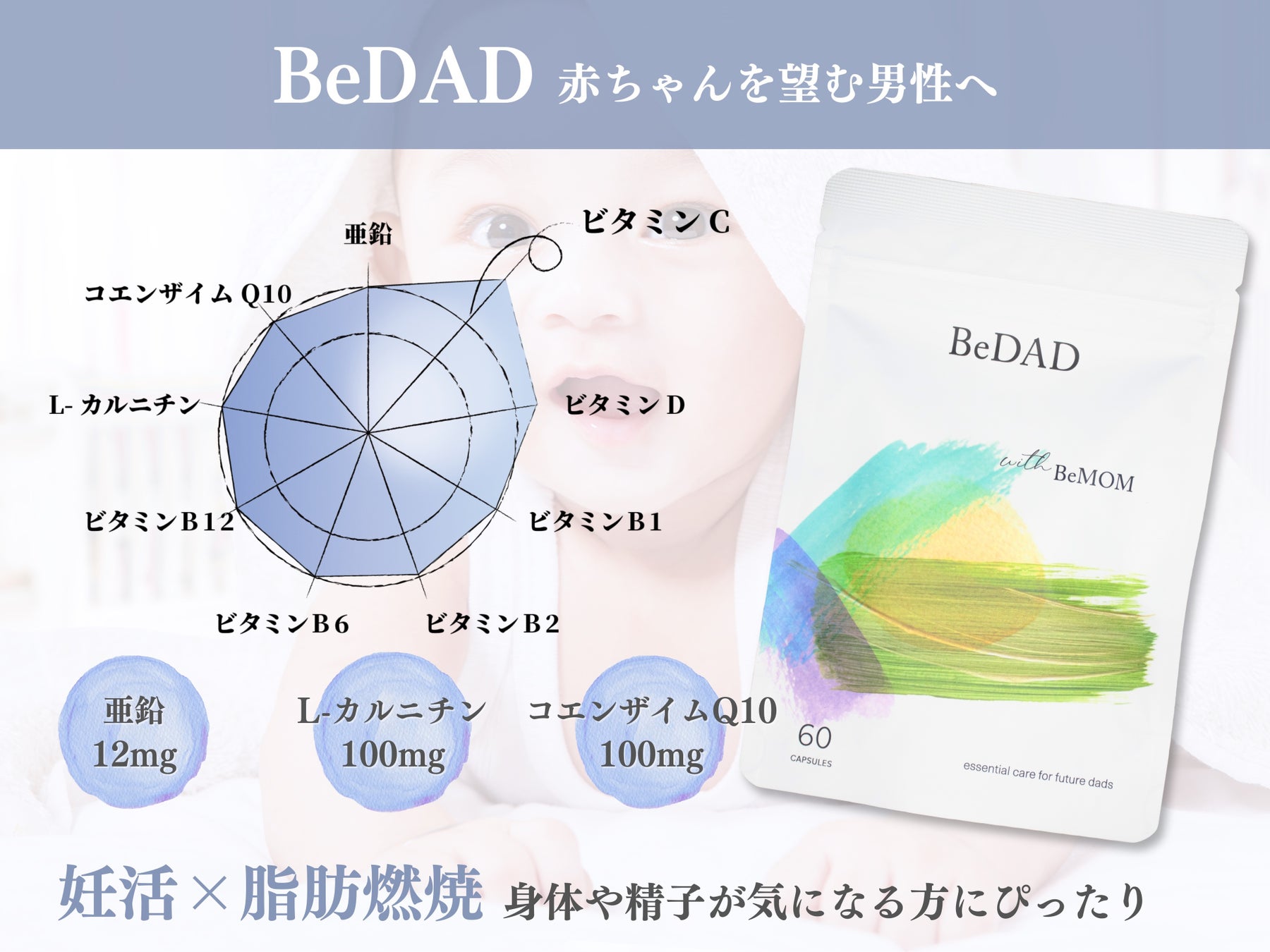『BeDAD』は妊活で話題になりにくい男性の妊活を応援するサプリメントです。現役の産婦人科医の監修のもと、他の専門医の意見も参考にして商品を開発しました。『BeDAD』は国内の工場で製造して、GMPマークも取得しているので、安心してお飲みいただけます。