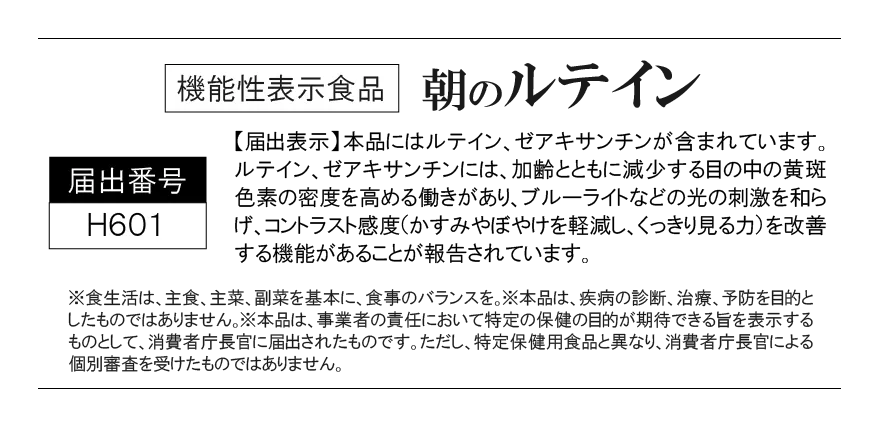 一般社団法人 健康長寿が販売する『朝のルテイン(https://ehitomi.com/)』は、機能性表示食品になりました。