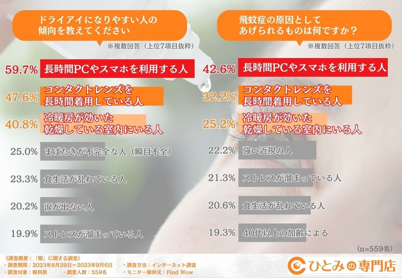 そこで今回、ひとみの専門店を運営する一般社団法人健康長寿(https://ehitomi.com/)は、全国の眼科医を対象に「ドライアイ・飛蚊症」に関する調査を実施しました。