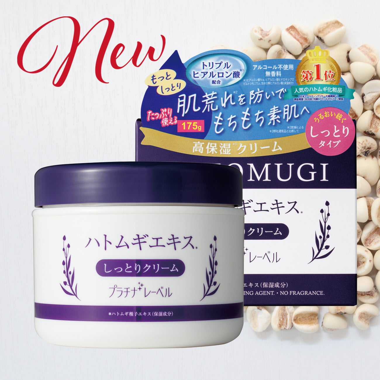 さっぱりとした使用感が人気のハトムギ化粧水ですが、お客様からの乾燥対策要望を受けて生まれた「しっとり高保湿タイプの化粧水」が好評につき、新たに「高保湿オールインワンゲル(シーズン限定販売)」と「同クリーム」をラインナップすることとなりました。