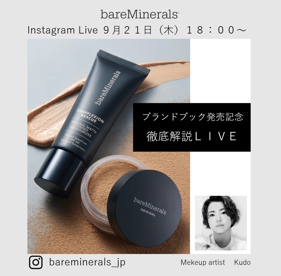発売を記念して、ベアミネラル専属アーティスト 工藤による、ムック本のゲスト紹介・内容商品の解説・使い方・コツや裏技等を盛り沢山にご紹介するインスタライブを開催いたします。