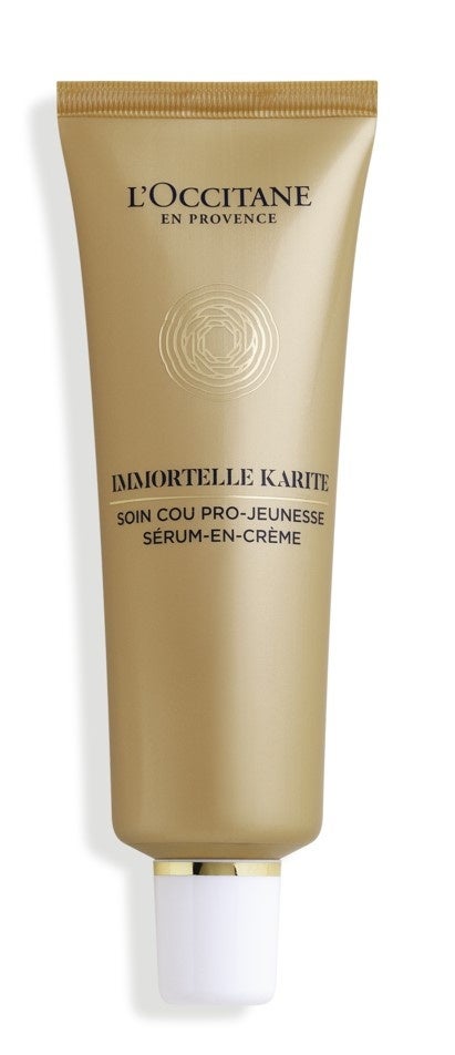 年齢は首に出ると言われるほど、実は若々しい印象にとって重要なパーツである、首元。そんな首元をこの秋、限定発売される「シア イモーテル セラムネッククリーム」で集中ケアを。「シアバター」が乾燥ダメージを受けた肌を保護しながらうるおいを与え、「イモーテル」から抽出された美肌有用成分を豊富に含む「イモーテルエッセンシャルオイル」がふっくらとしたハリとツヤのある首元へと導きます。さらに、肌にハリと弾力を与えるペプチド、速やかに肌を引き締め、なめらかに整えるオーツエキスも配合。パワフルなコラボレーションで、瞬時に肌が引き締まり、若々しい首元を叶えます。至福のケアタイムになるような落ち着くハーブの香りと、べたつかないみずみずしいセラムテクスチャー。チューブタイプなので、持ち運んで、お仕事の合間などにマッサージするのもおすすめです。
