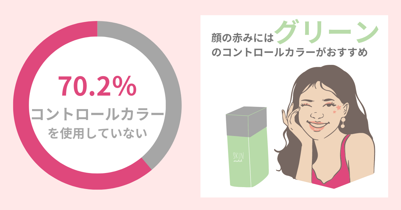 ●70.2%の女性がコントロールカラーを使用せず。赤みにはグリーンのカラーがおすすめ!