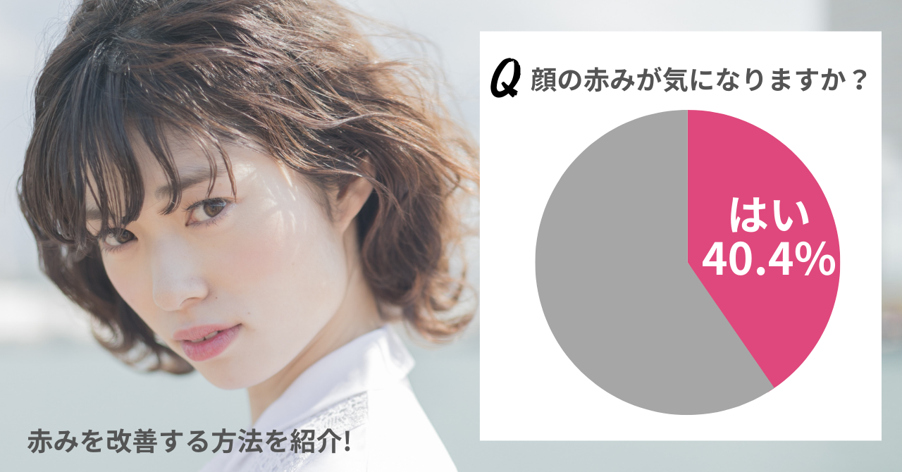 調査の結果、顔の赤みが気になっている女性は、全体の40.4%であることがわかりました。