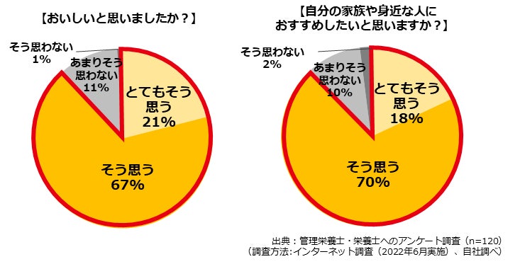 3. 美味しさ:管理栄養士・栄養士の88%が「おいしい」「自分の家族や身近な人にすすめたい」と回答