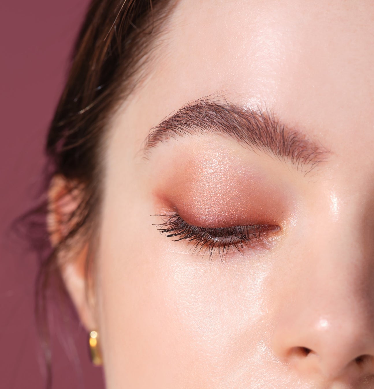 B(右上):温かさを感じる透け感ローズシャンパンベージュで目元に自然な奥行きが出せます。