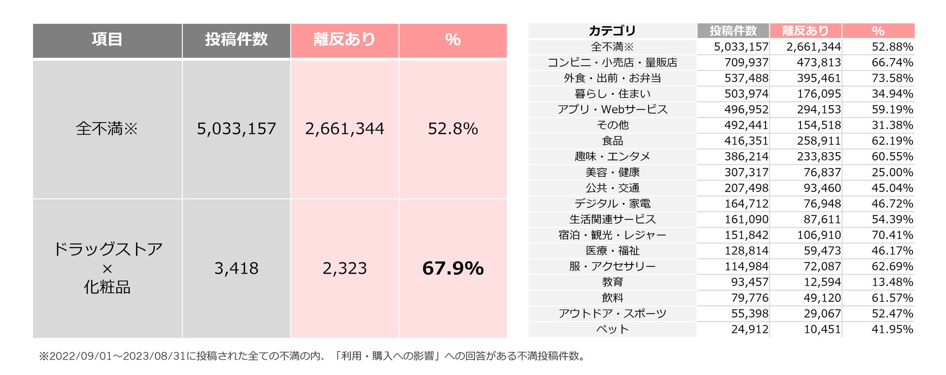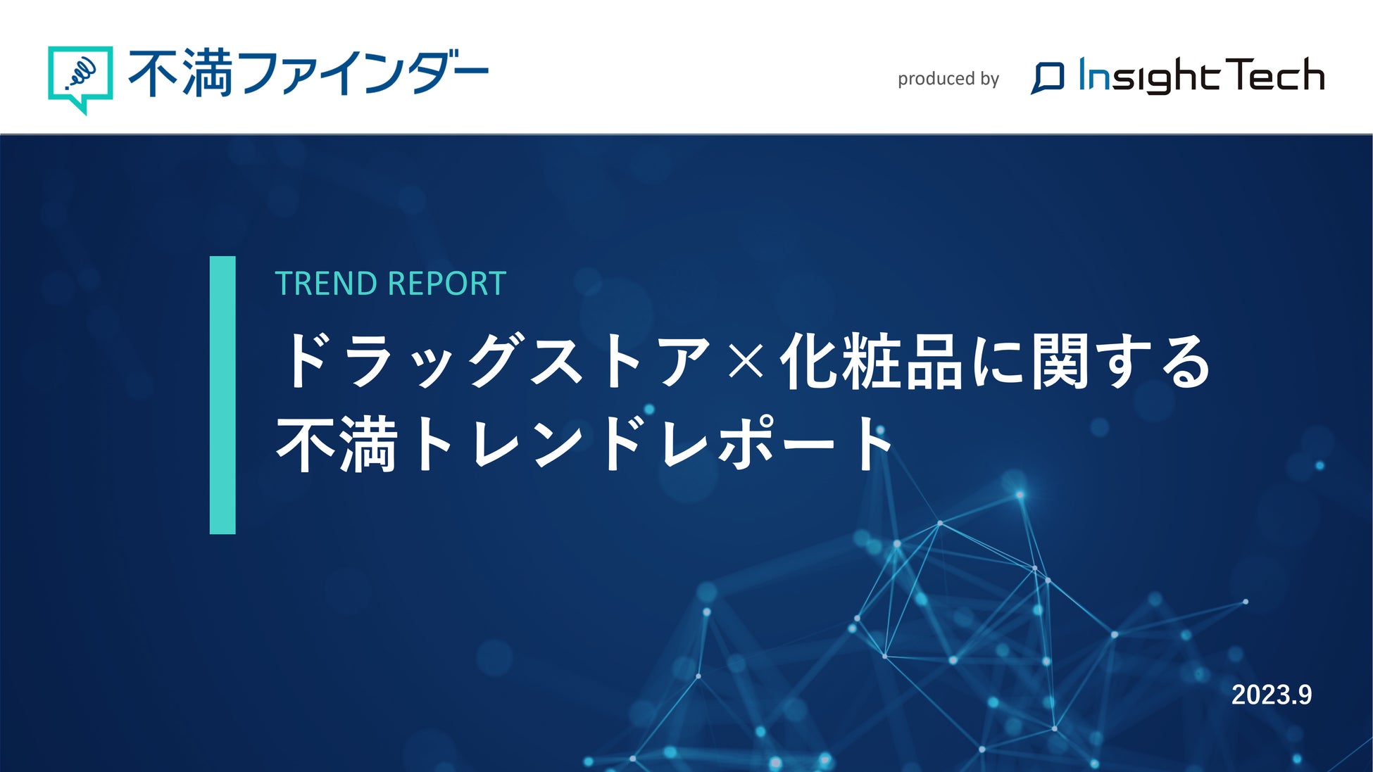 株式会社 Insight Tech(東京都新宿区、代表:伊藤友博、以下 Insight Tech)は、同社が運営する『不満買取センター』に寄せられた化粧品をドラッグストアで購入する際の不満を『不満ファインダー』を用いて解析・考察したレポートを公開しました。