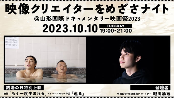 なお、本イベントでは、「銭湯の日」記念として、堀川によるトークセッションとともに、堀川の自主制作作品で「第8回 京都国際映画祭」の優秀賞を受賞した話題の映画『もう一度生まれる』と、同作の企画のもととなったドキュメンタリー作品『還る』の特別無料上映を予定しております。