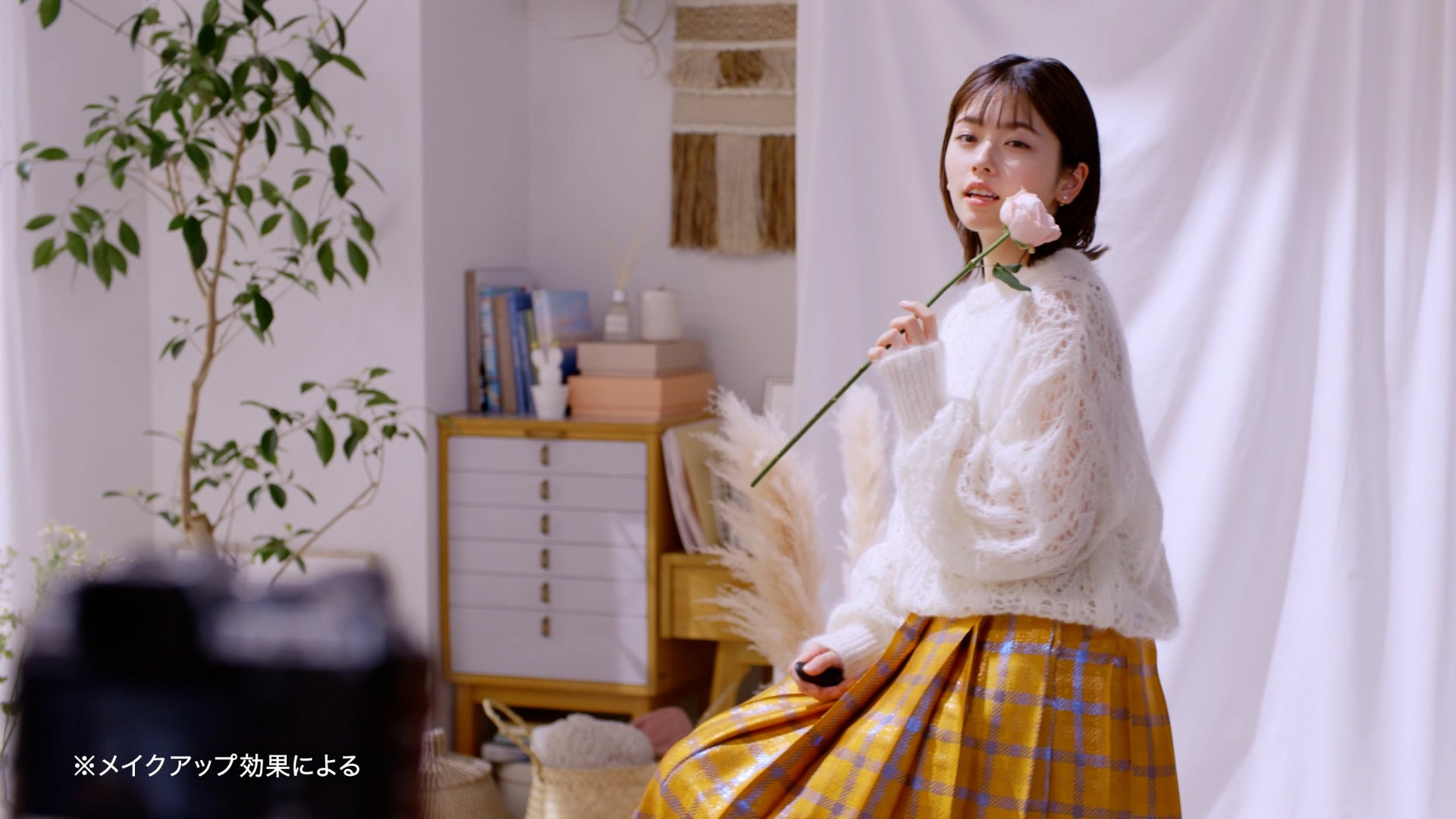 「メイクで“いい肌”に仕上がったら、嬉しくて思わず写真を撮りたくなってしまう」そんな乙女心を、まるで本当の小芝さんのプライベートタイムを覗いているかのような、何気ない日常のひとコマとして表現しました。