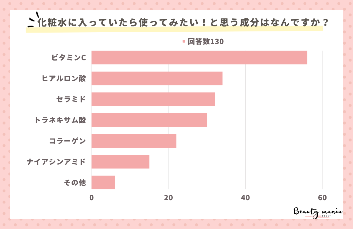 アンケート内容:化粧水に入っていたら使ってみたい!と思う成分はなんですか?