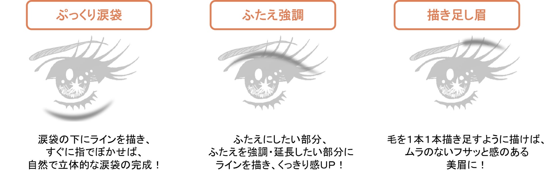 涙袋、ふたえライン、眉にも!描き足して目もとを強調