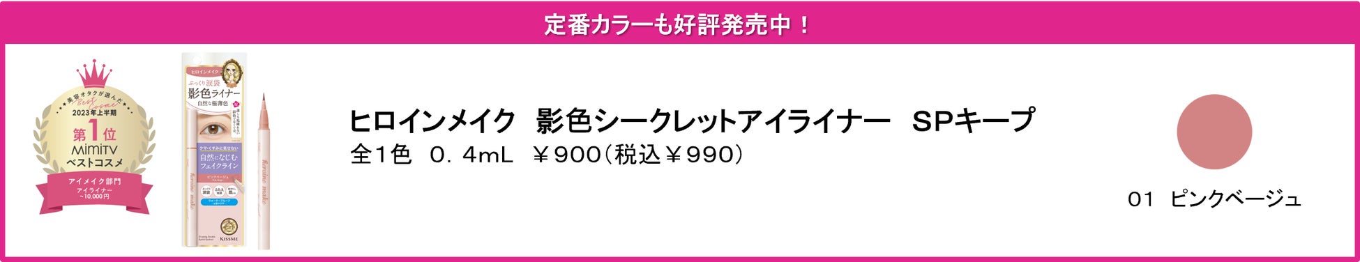 2023上半期 MimiTV ベストコスメ アイメイク部門 アイライナー 第1位を受賞したヒロインメイクの「影色シークレットアイライナー SPキープ」に、ほんのり赤みニュアンスで肌なじみの良い「アプリコットベージュ」が数量限定で登場。