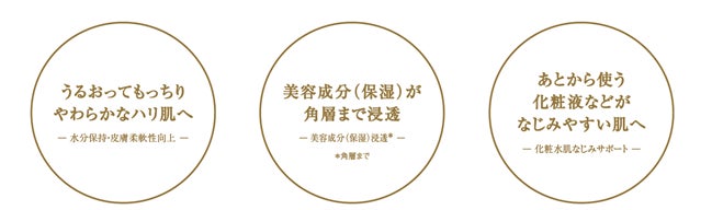 なじませた瞬間、肌上でうるおいを保持したハリ膜を形成。美容成分(保湿)が角層へ浸透し、やわらかなハリ肌へ。