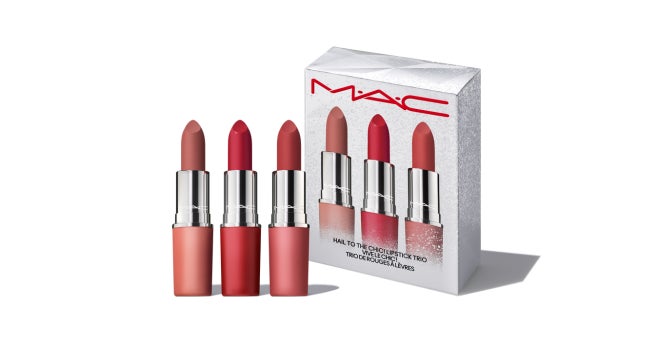 リップスティック(レトロマット)とパウダー キス リップスティックの定番シェードがホリデー限定パッケージで3本セットになって登場。ホリデー限定のスノーホワイトなパッケージでホリデームードを盛り上げて。