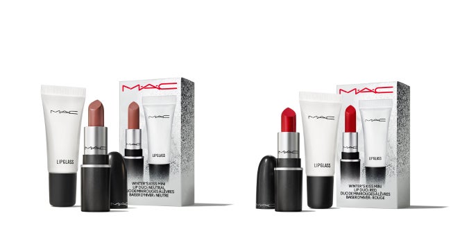 レトロ マット リップスティックとリップ ガラス クリアのミニサイズがDUOセットになって登場。雪のように輝くリップを演出し、ホリデームードを盛り上げて。